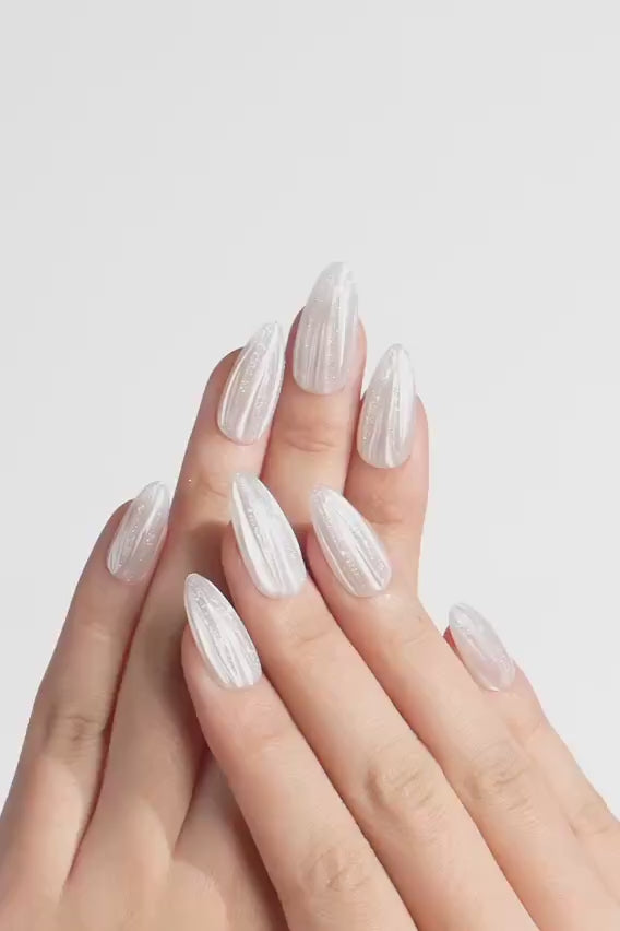 Inspired by the crisp brightness of a winter morning. The ice-white vertical glitter lines bring a refreshing "Clean Aesthetic" to your fingertips. It feels like a fresh start or a blank page in a new diary. Wear this to reset your mindset and embrace the new possibilities of 2026.